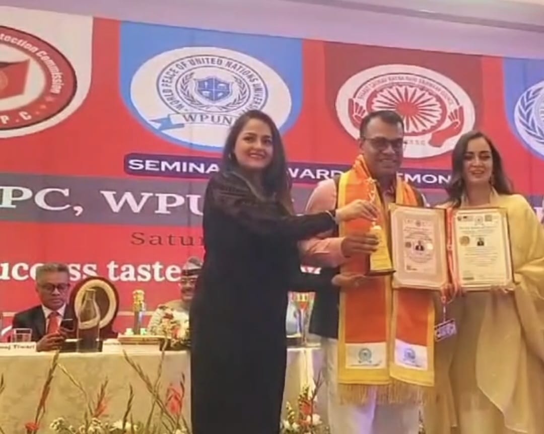 The Literary Excellence Award is conferred upon writers who have made significant contributions to literature and cultural enrichment. Ravindra Ji received the Honorary Doctorate Award in Literature from Honourable Dia Mirza Ji, a prominent bollywood actress and social activist, during the World Peace United Nations University Seminar & Award Ceremony. This recognition highlights his creative achievements in Hindi writing and his role in inspiring readers through works that promote intellectual growth and cultural depth.